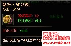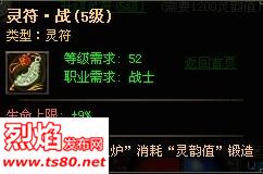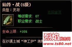 灵符能够带给玩家巨大的生命值,并且战士、道士、法师三职业的生命值加成不同,但越是高级的灵符血量加成越是丰厚。